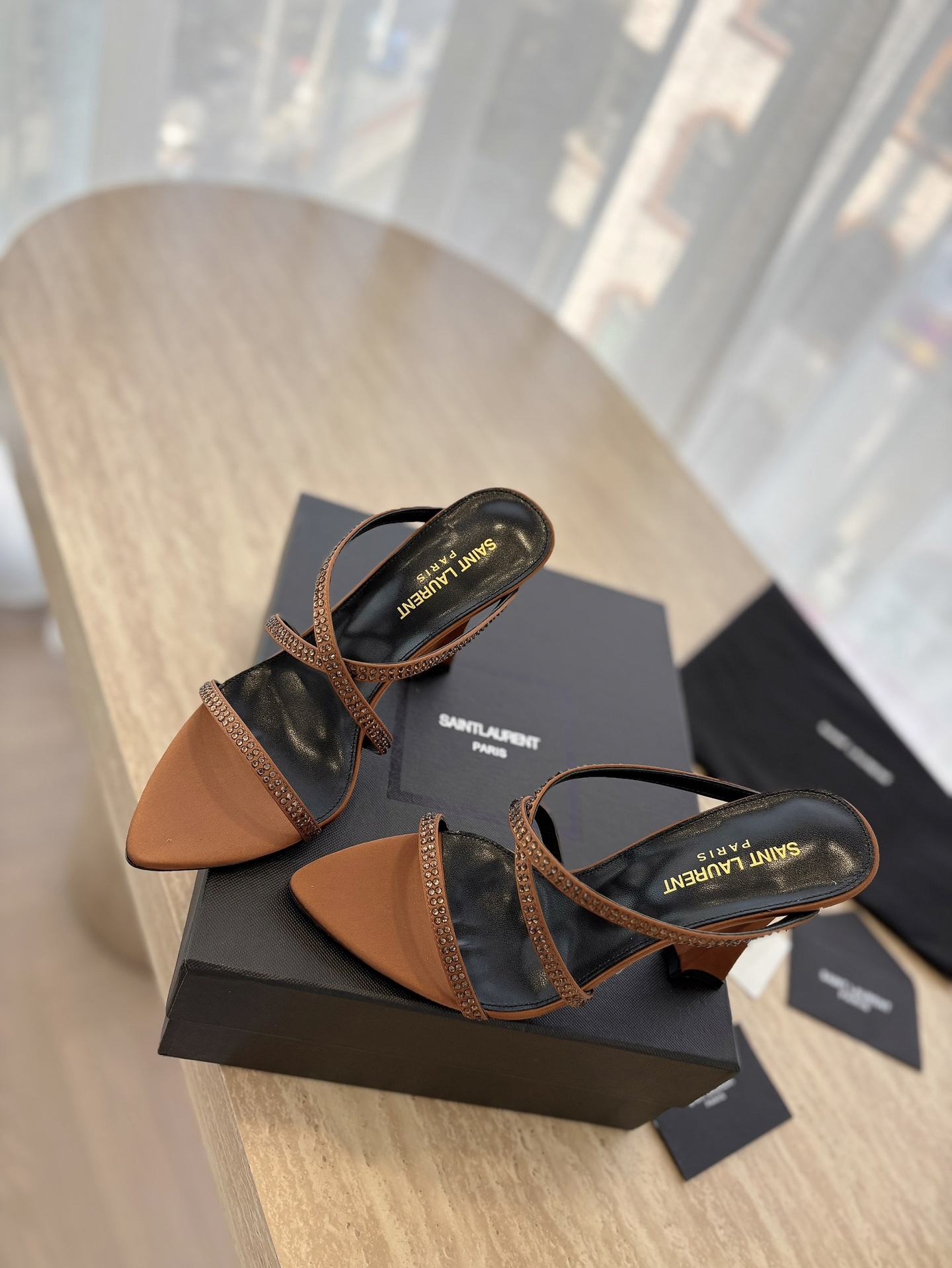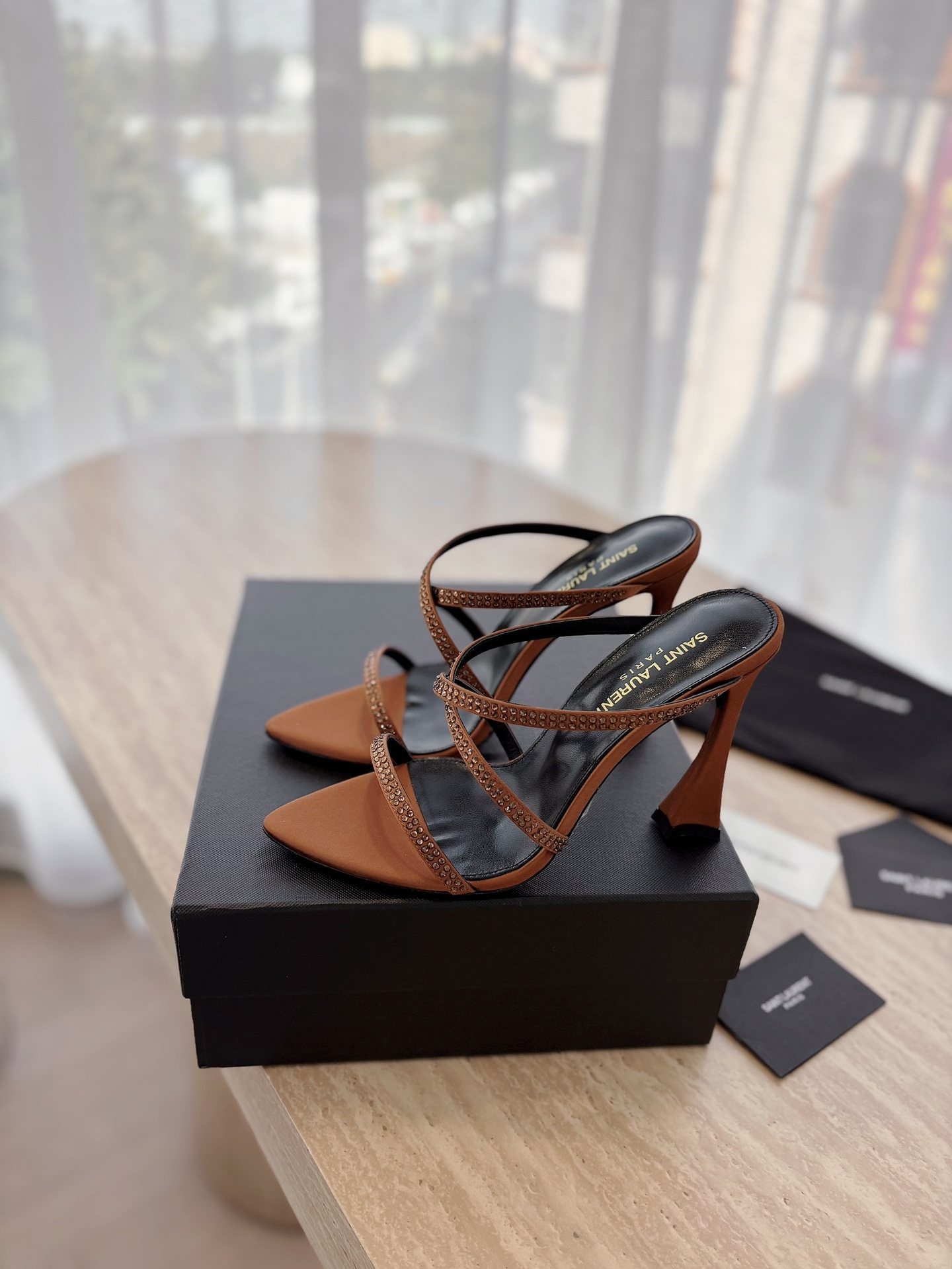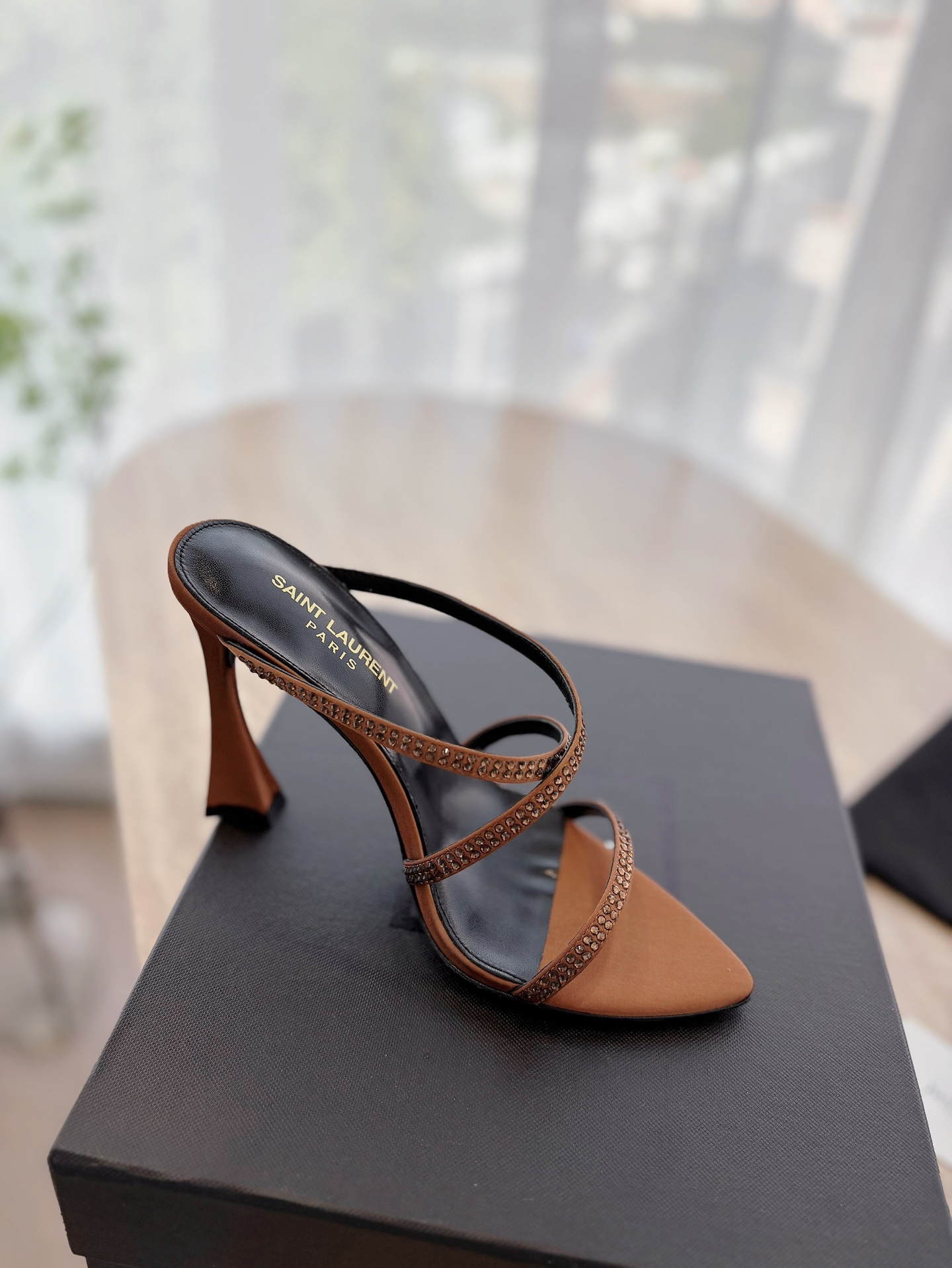 Saint Laurent YSL Rhinestone Heels Sandals Slipper Shoes