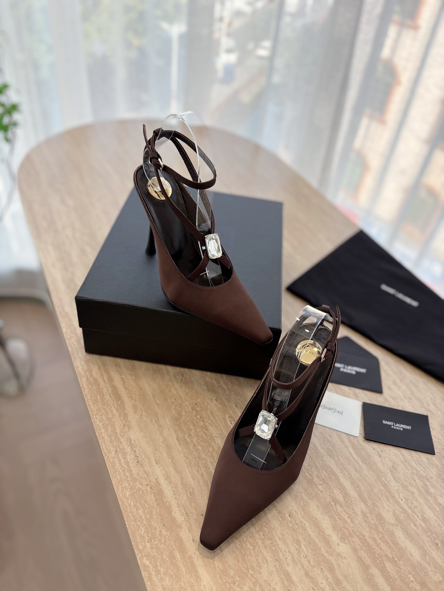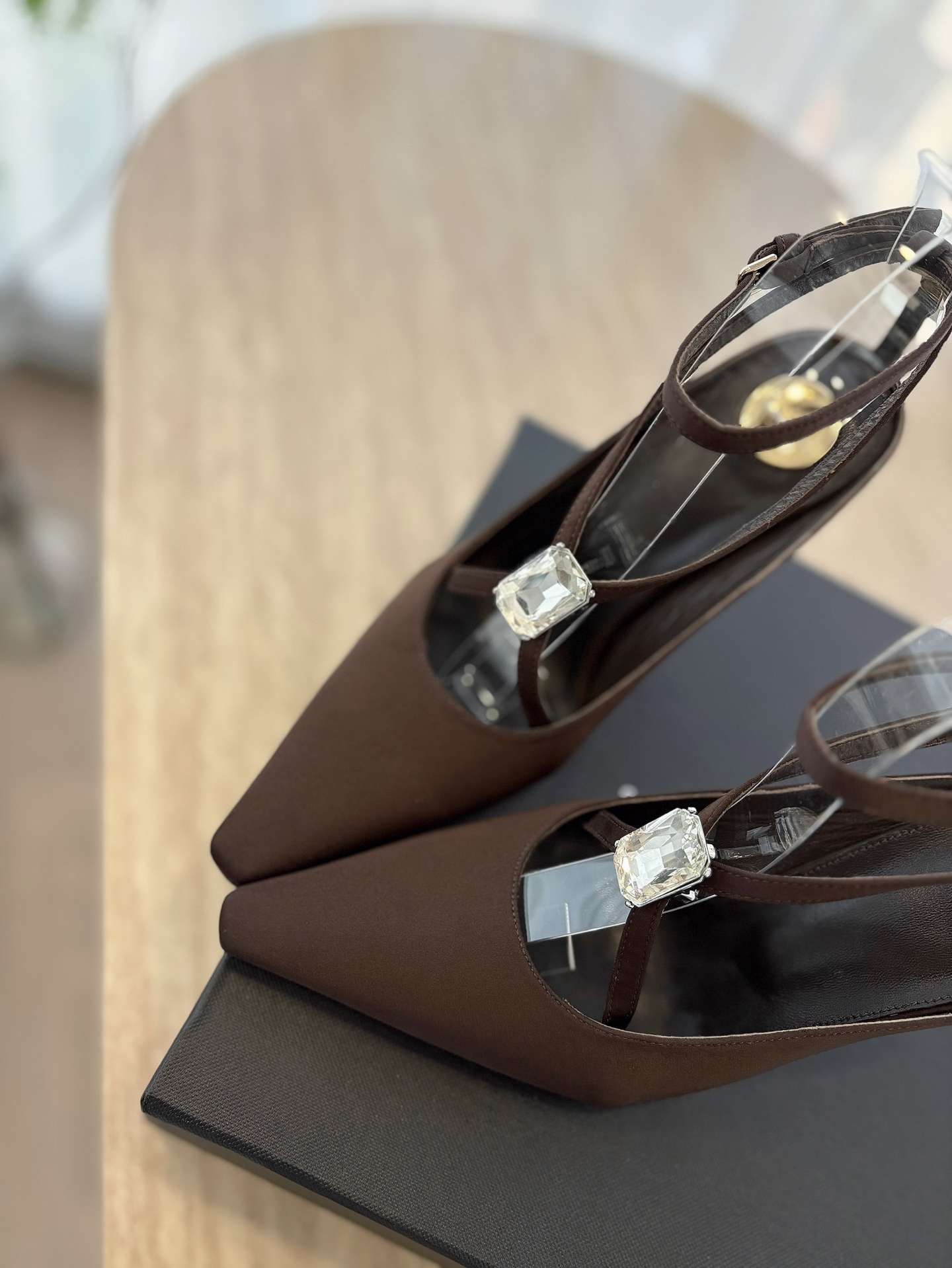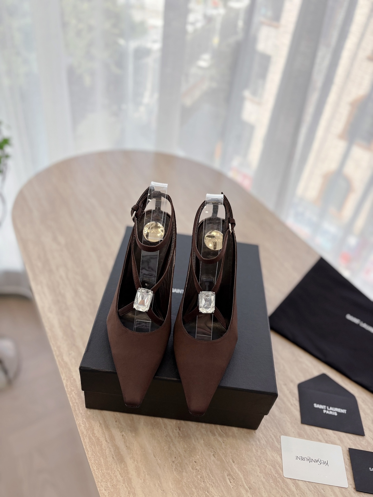 Saint Laurent YSL 25ss Big Rhinestone Pointed Toe Heeled Sandals Shoes