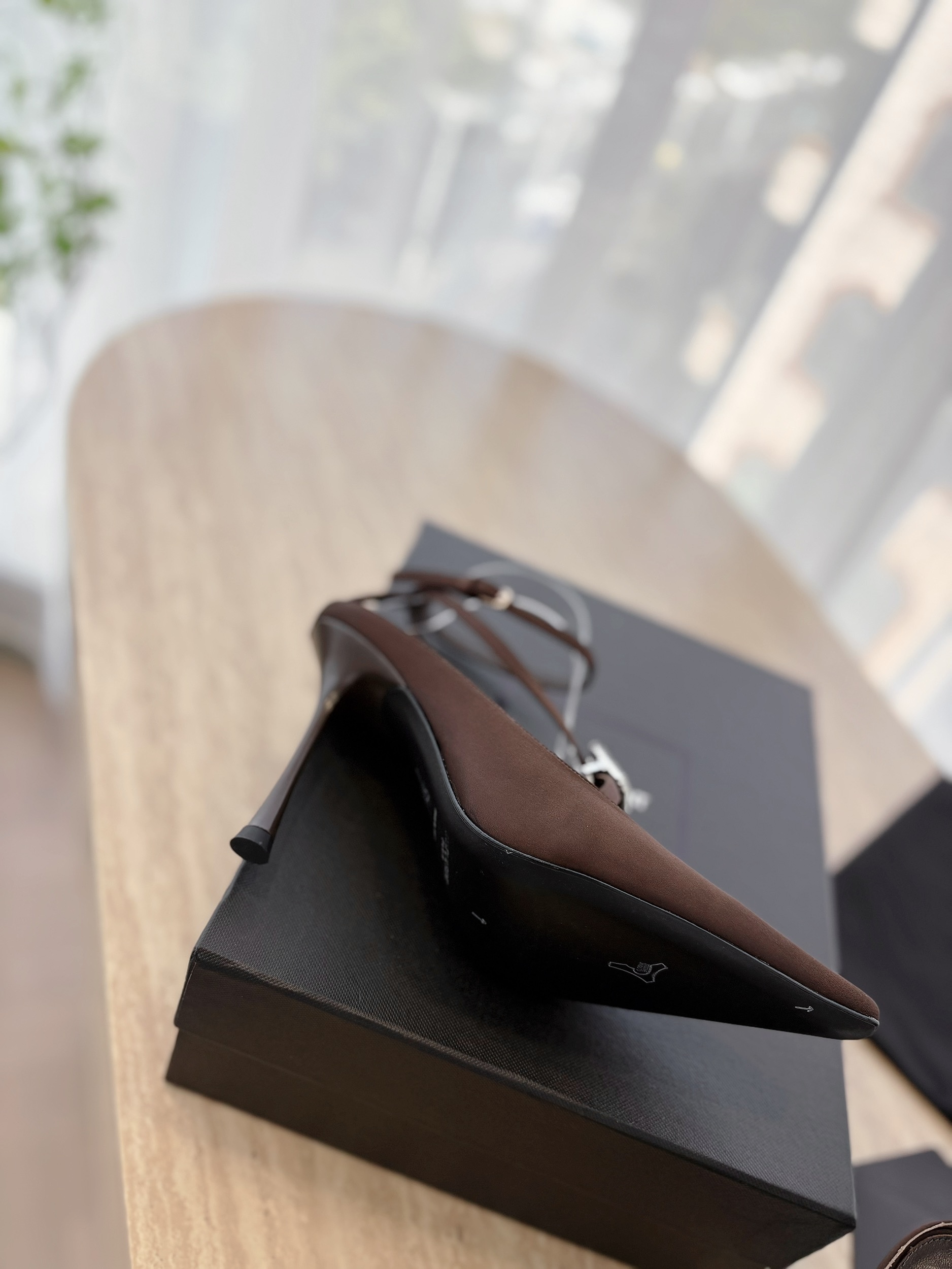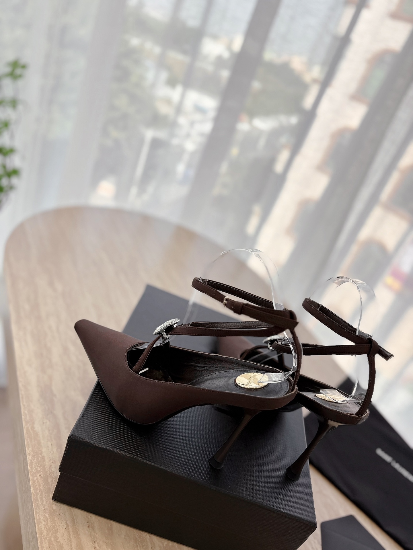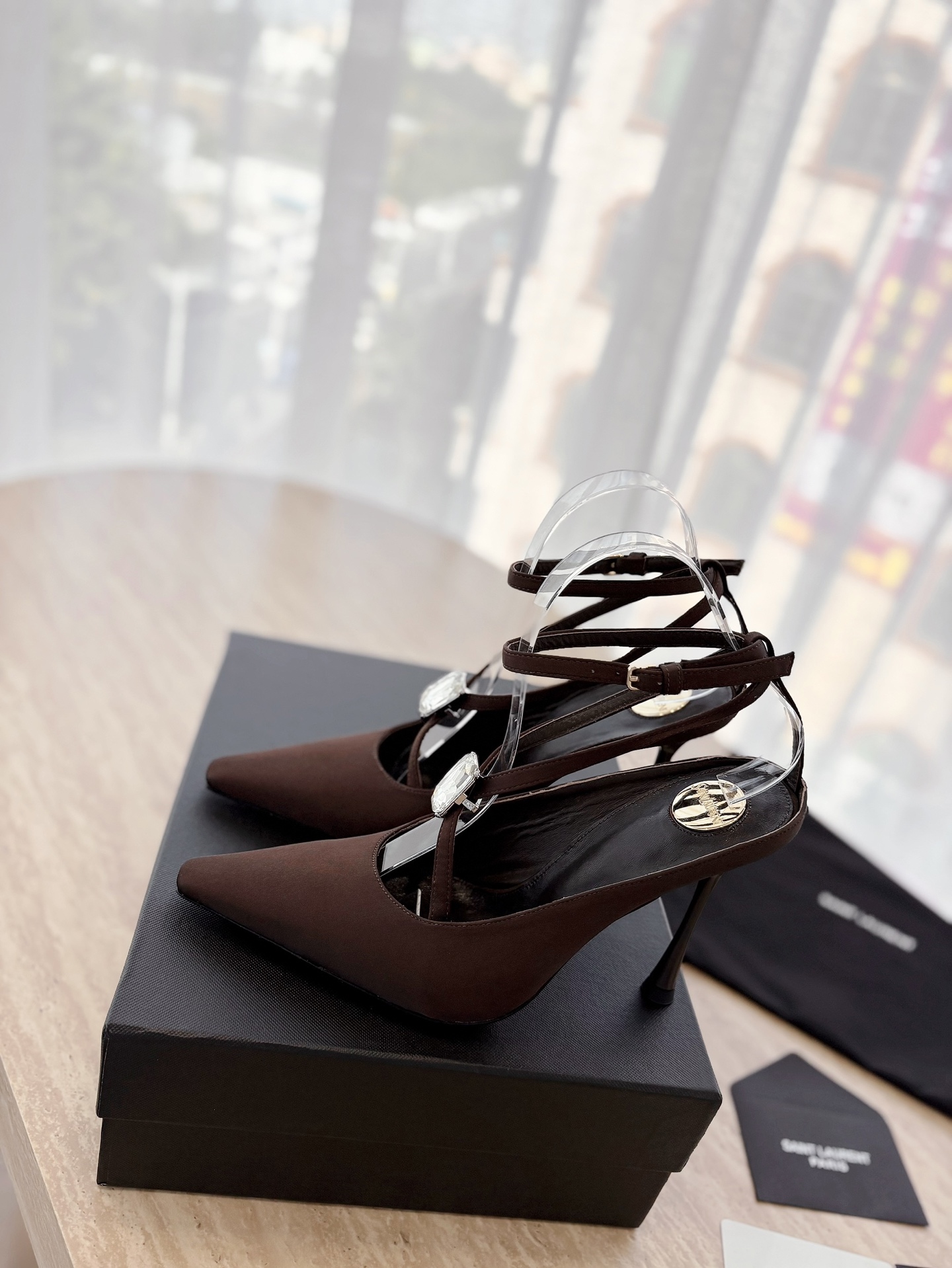 Saint Laurent YSL 25ss Big Rhinestone Pointed Toe Heeled Sandals Shoes