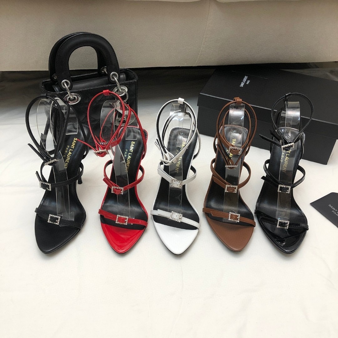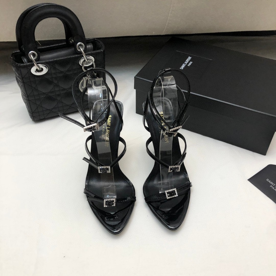 Saint Laurent YSL Strap And Buckle High Heels10.5CM Slide Sandal