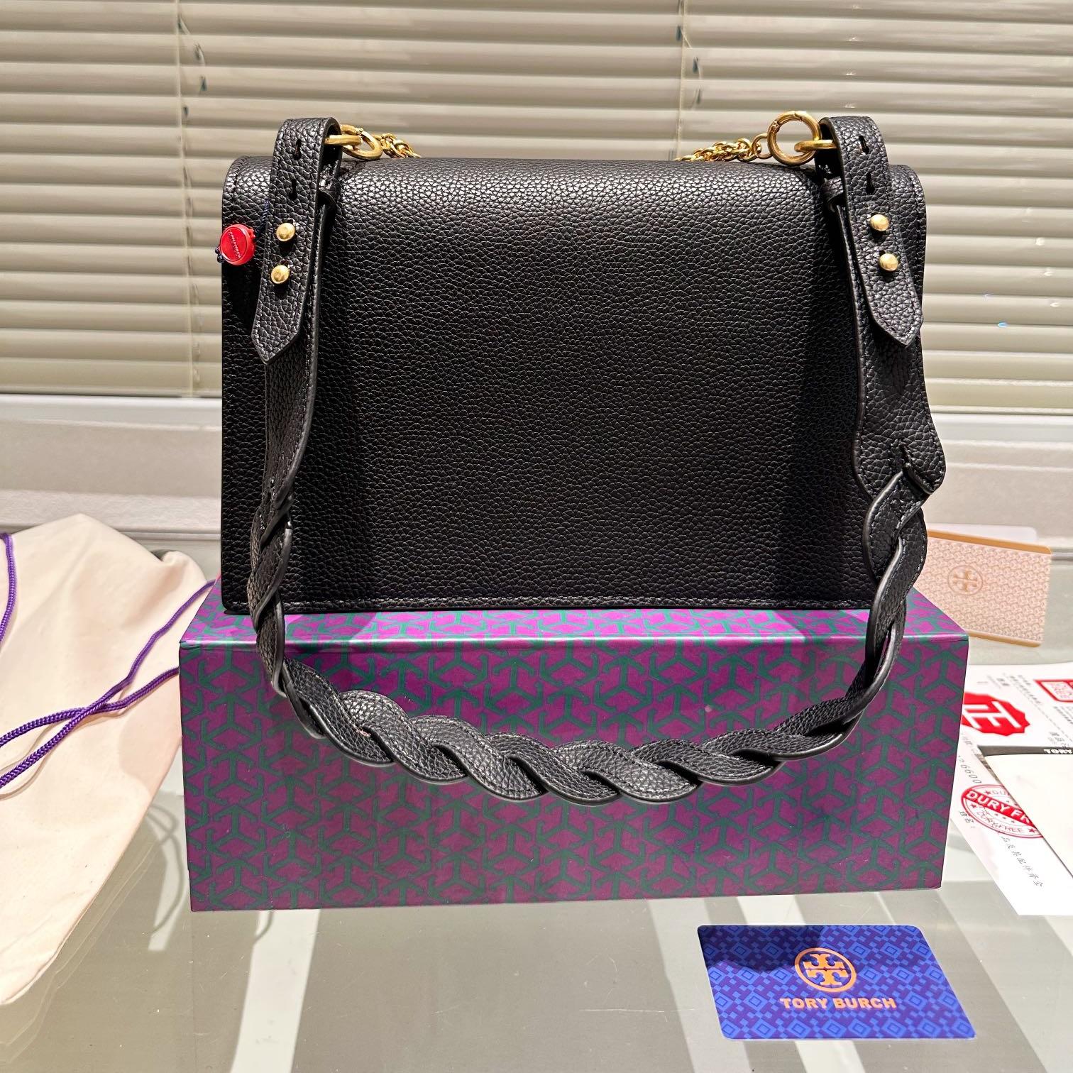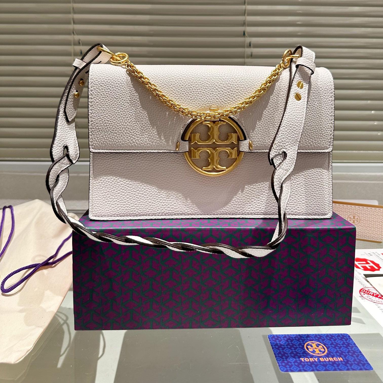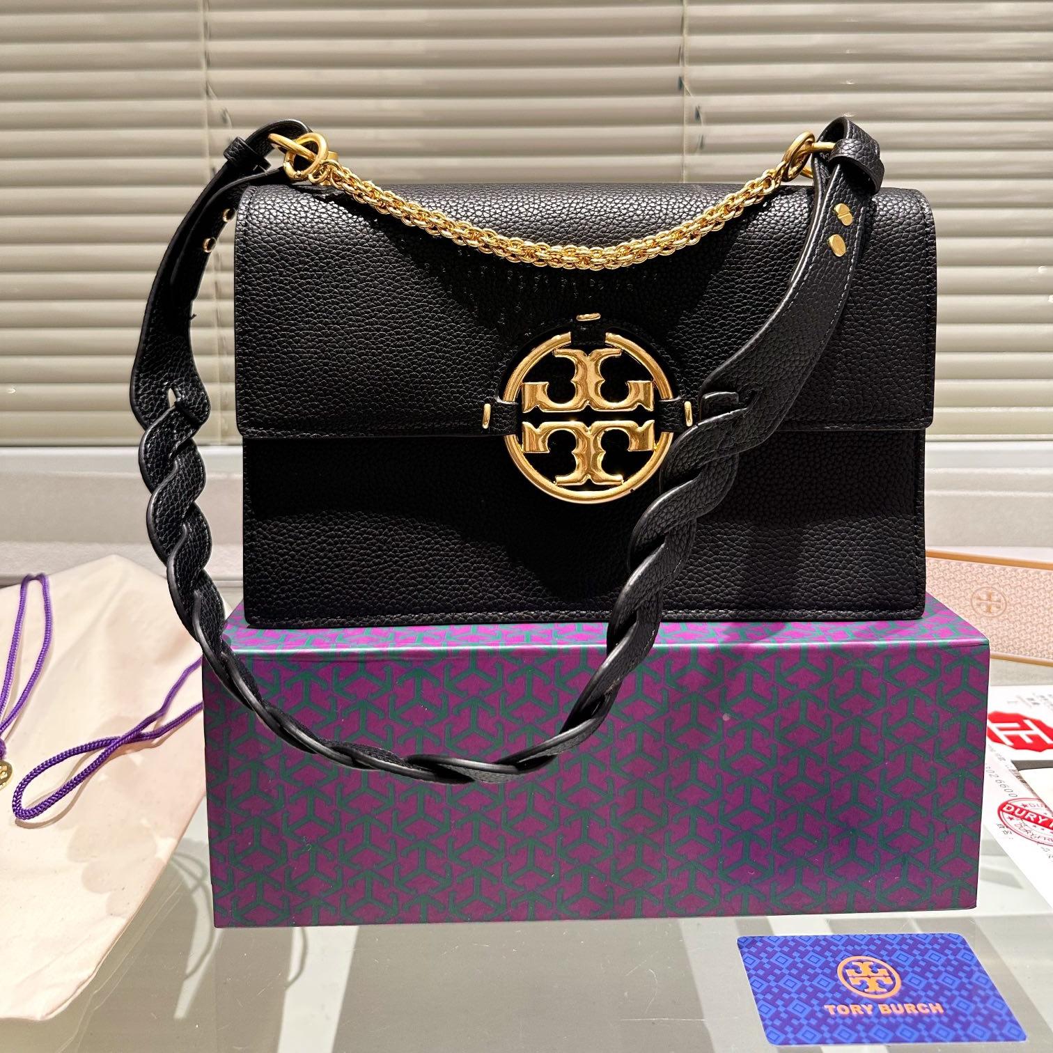 Tory Burch Miller Flap Leather Shoulder Bag with Braided Strap
