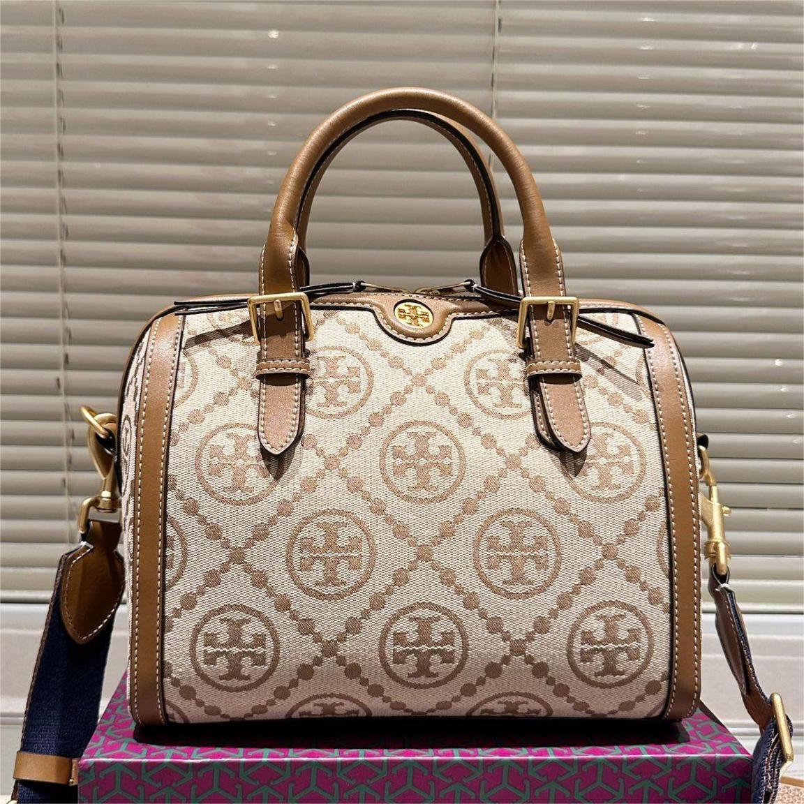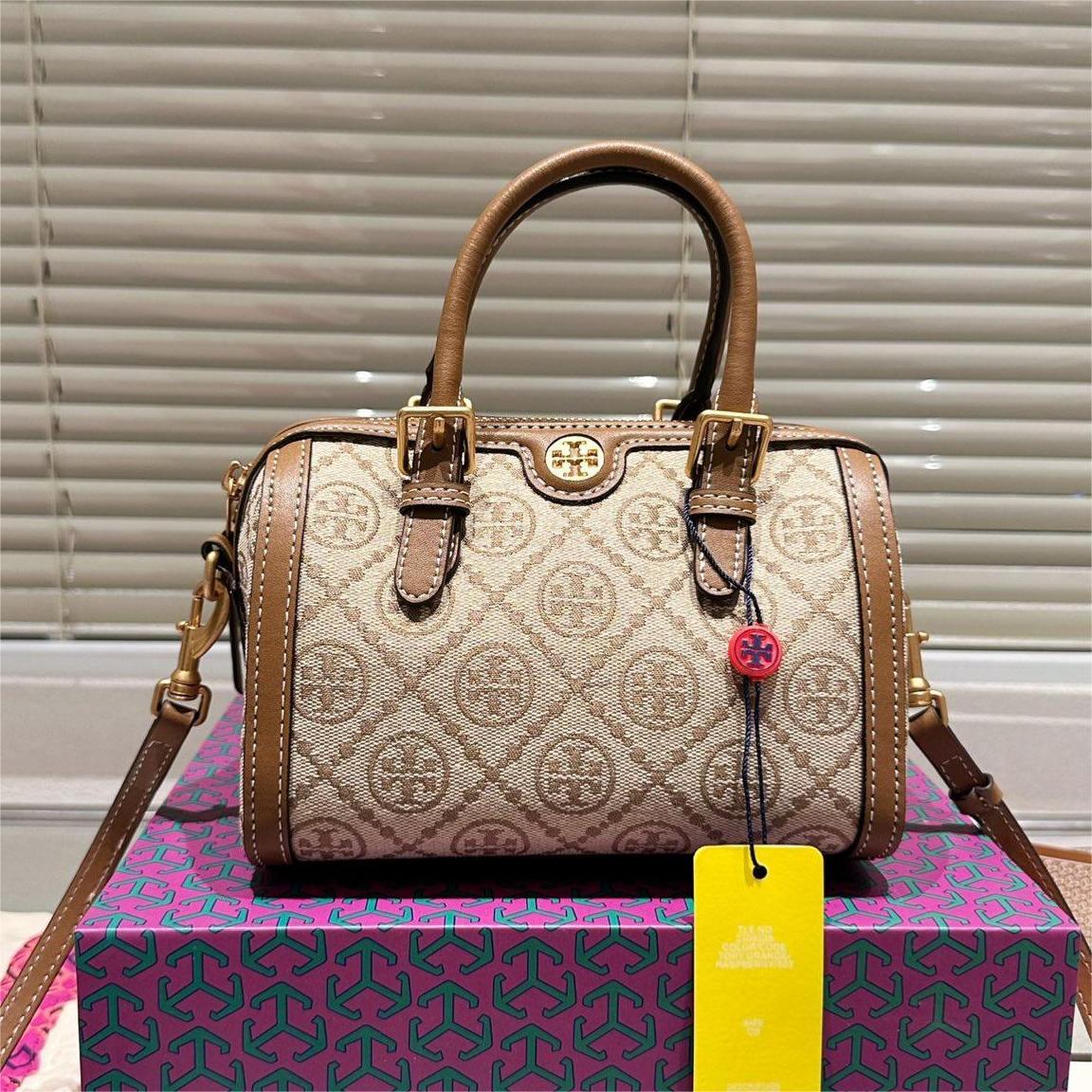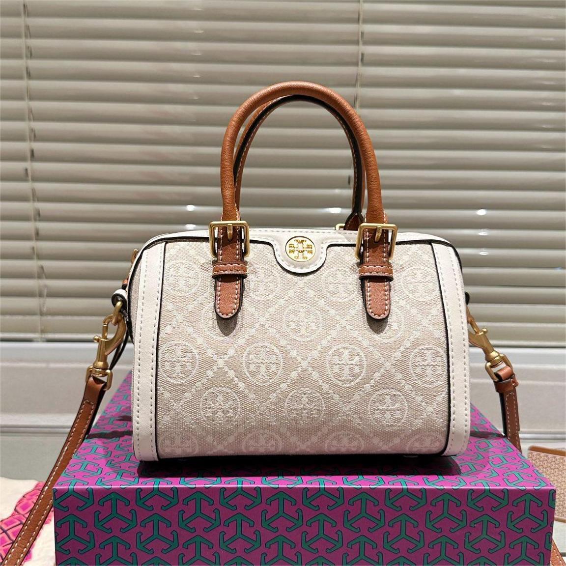 TORY BURCH Petite Barrel monogrammed canvas shoulder bag