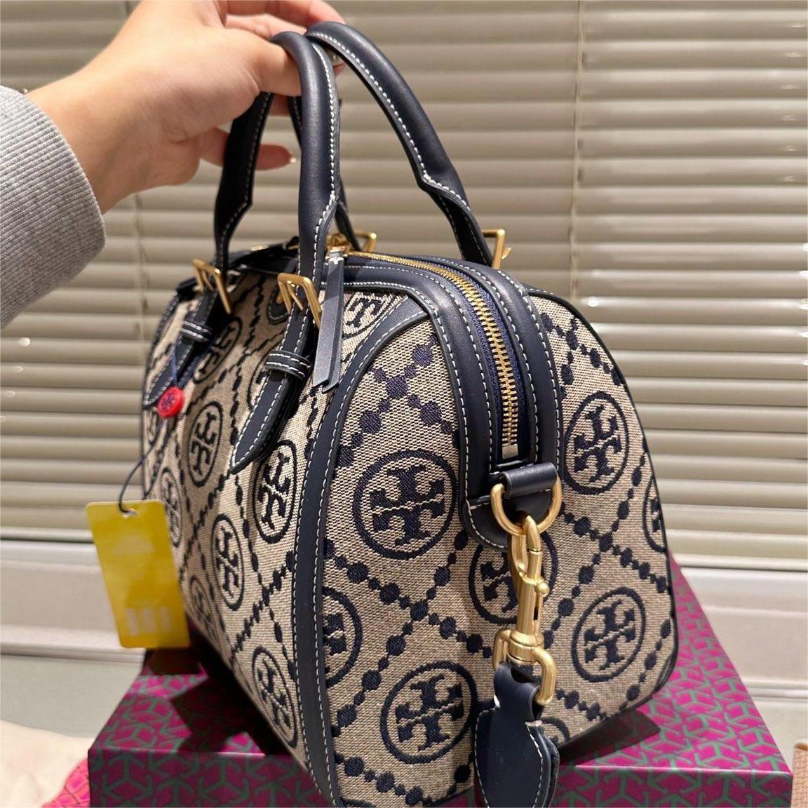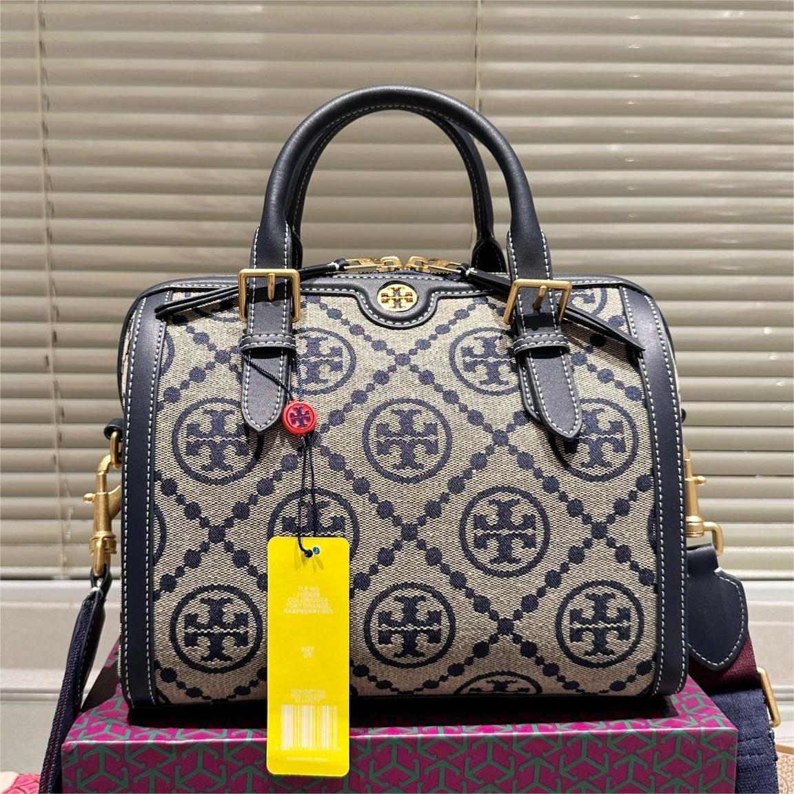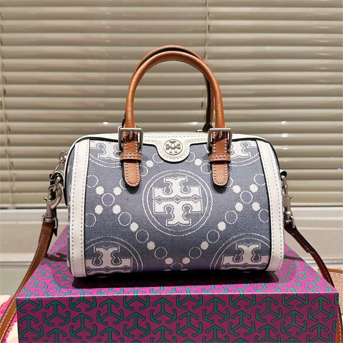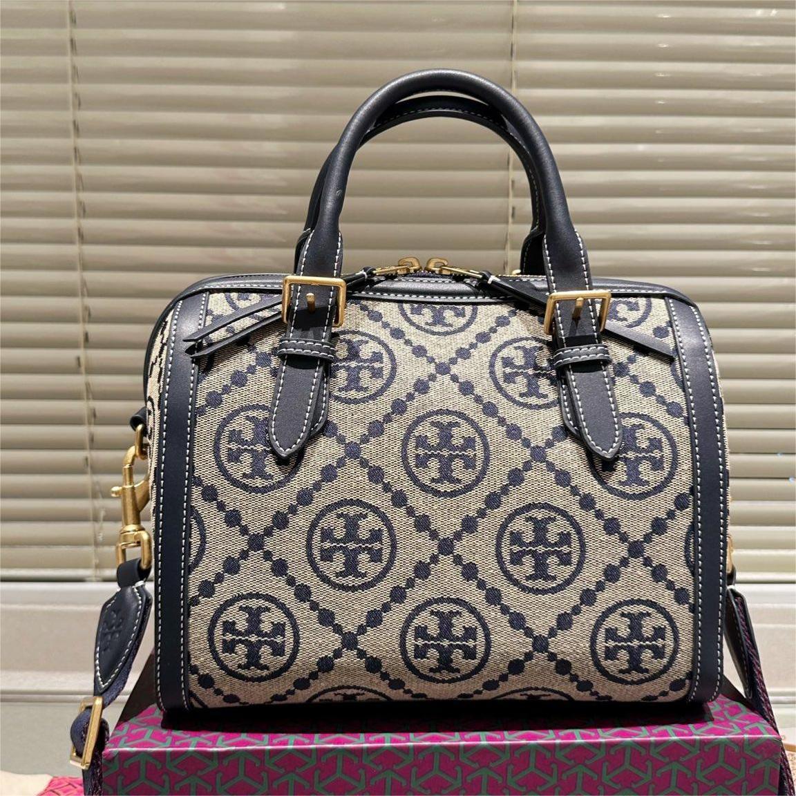 TORY BURCH Petite Barrel monogrammed canvas shoulder bag